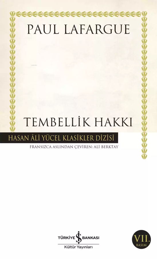 Paul Lafargue (1842-1911): Fransız Marksist, iktisatçı, gazeteci, yazar. Tıp öğrenimi gördü, Londra'da Marx ve Engels ile tanıştı, Birinci Enternasyonal'e katıldı. 1868'de Karl Marx'ın kızı Laura ile evlendi. Paris Komünü'nde faal bir rol aldı. Jules Guesde ile birlikte temellerini attığı Fransız İşçi Partisi'nin en etkili liderlerinden biri oldu. Keskin, yer yer ironik bir dille kaleme aldığı Tembellik Hakkı, ilk kez 1880 yılında haftalık Égalité dergisinde tefrika edildi, 1883 yılındaysa cezaevindeyken eklediği birkaç notla birlikte tekrar yayımlandı. Lafargue Tembellik Hakkı'nda sadece kapitalizmi değil çalışma dogmasıyla baştan çıkarıldığını söylediği proleteryayı da sertçe eleştirir. Zorunlu çalışmayı kapitalist toplumda her tür entelektüel soysuzlaşmanın, organik bozulmanın sebebi sayar. Lenin'in Marksizm'in en yetenekli ideologlarından biri olarak andığı Lafargue, yaşlılığın zihin ve bedende yol açacağı yıkıma katlanmamak için 1911 yılında eşi Laura Marx ile birlikte intihar ederek yaşamına son verdi.